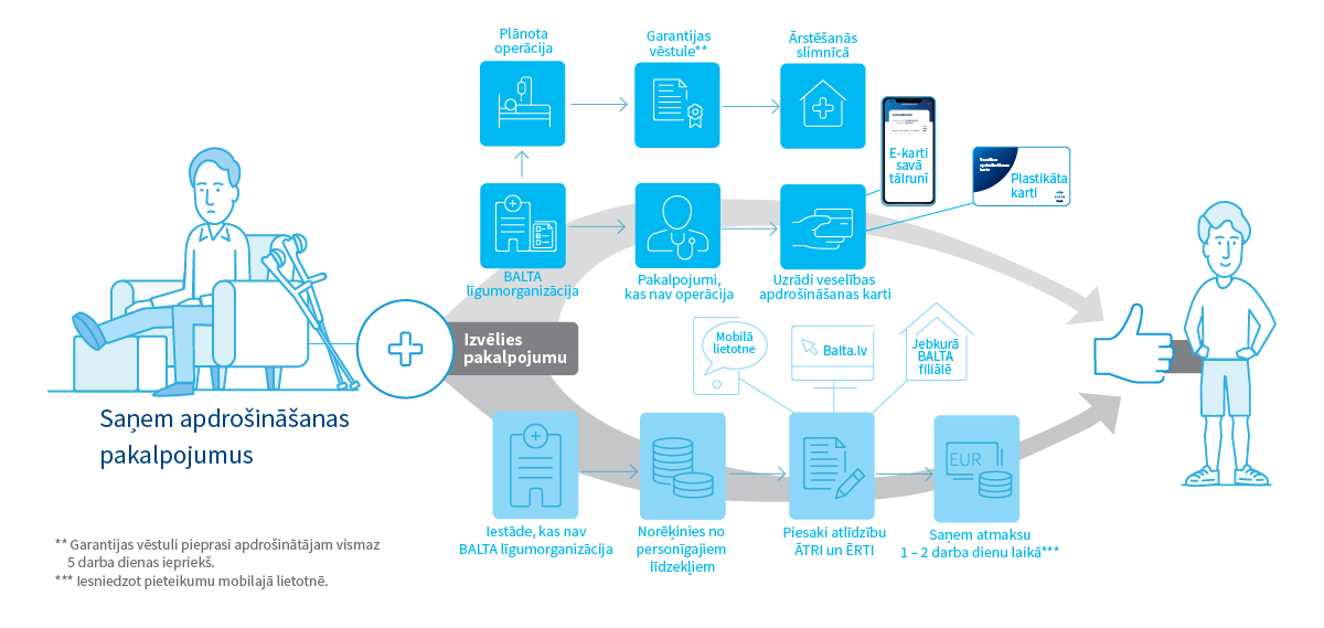 - valsts apmaksāti veselības aprūpes pakalpojumi, kuru pacienta līdzmaksājuma daļu sedz BALTA, tādējādi Tev visi izdevumi būs apmaksāti;